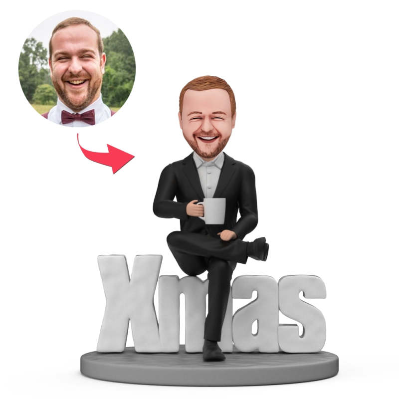 Christmas Gift For Business Man Custom Bobble Head Sitting on Xmas Sign