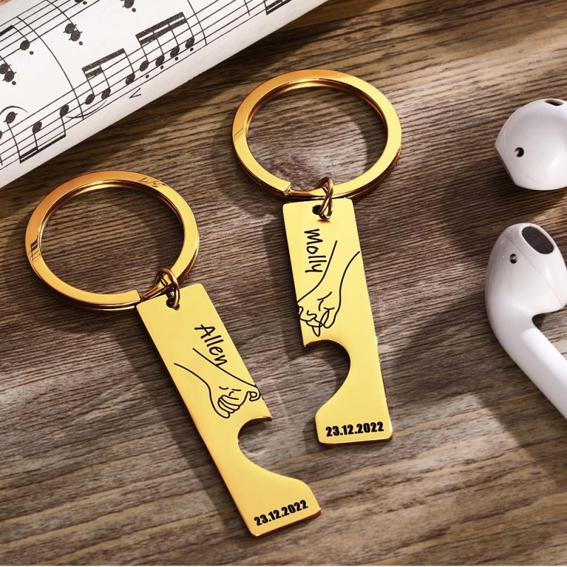 Couple Keychain Set Custom Heart Keychain Personalized 2 Pcs Matching Couple Keyring Gift For Him Valentine's Day Gift For Boyfriend/Husband