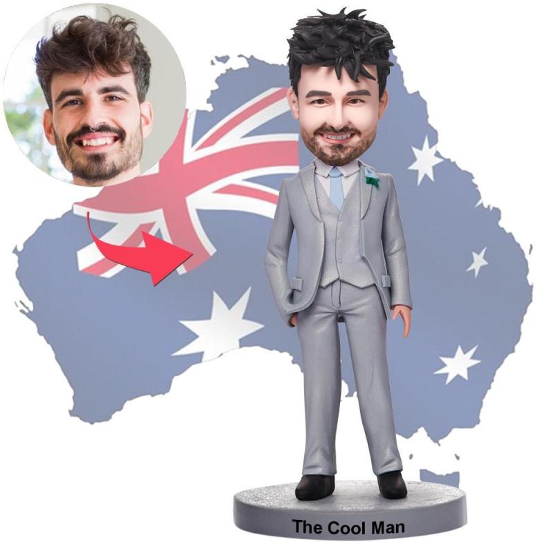 AU Sales-Custom Business Man In Grey Suit Bobbleheads With Engraved Text Gift For Man