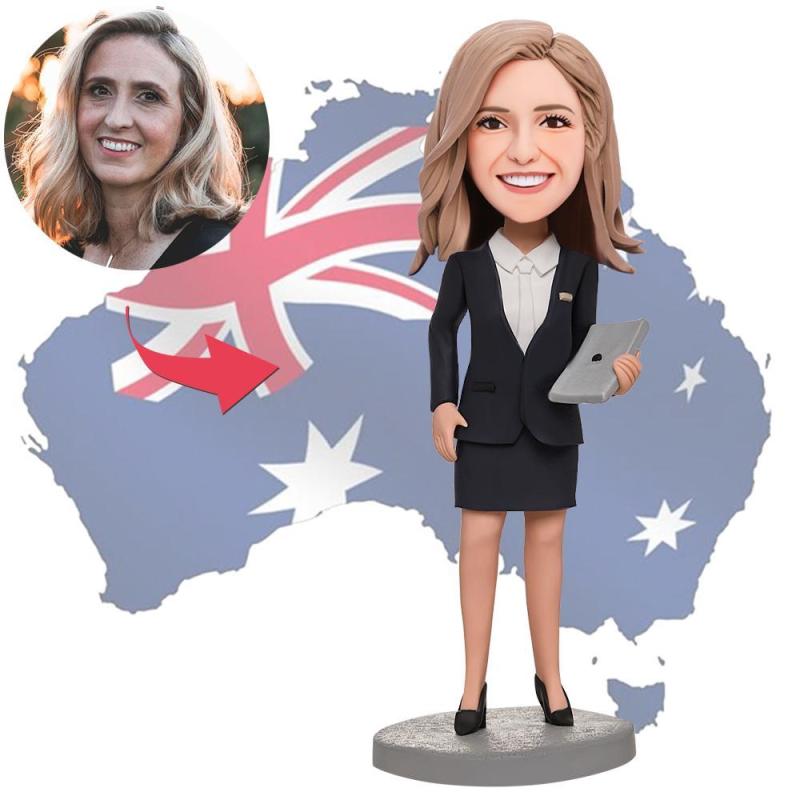 AU Sales-Custom Business Woman Holding A laptop Bobbleheads With Engraved Text Gift For Her