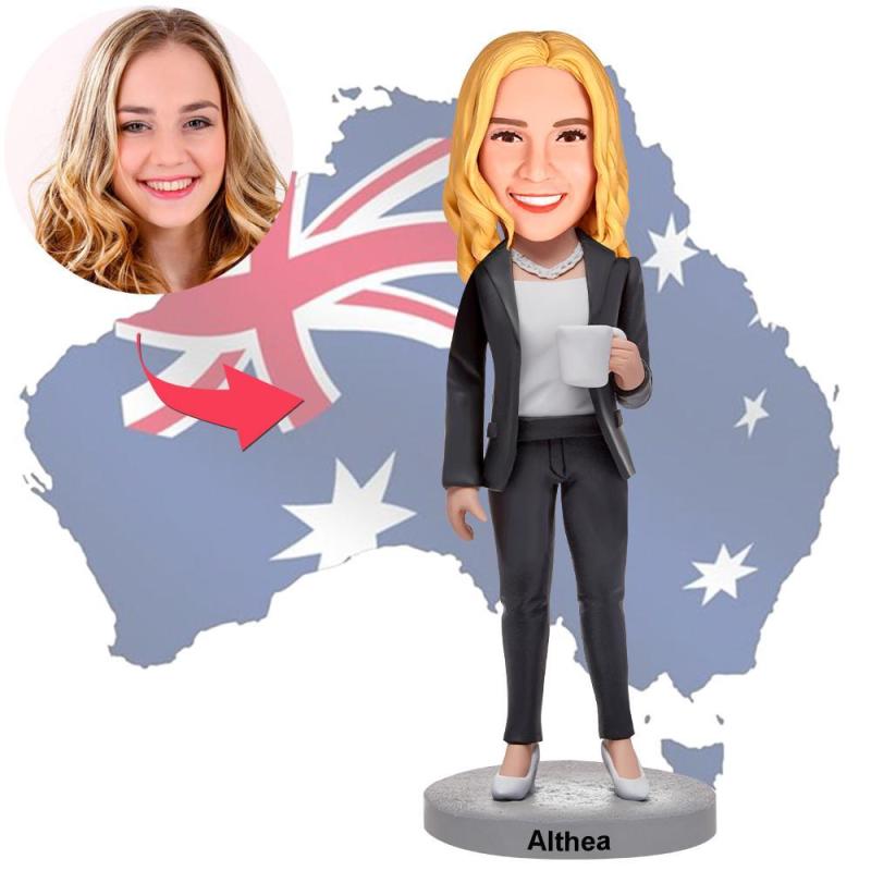 AU Sales-Custom Business Woman Holding A Water Glass Bobbleheads With Engraved Text Gift For Her
