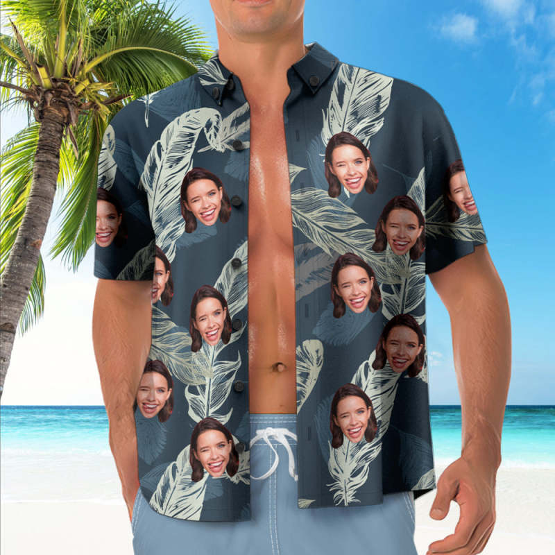Custom Face Hawaiian Shirt Leaves Pattern Graphic Prints Hawaiian Shirt