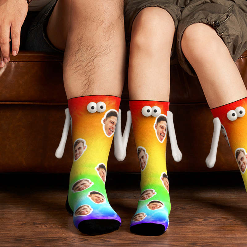 Custom Face Socks Magnetic Holding Hands Suction Funny Holding Hands Socks Lovely Socks for Couple Colorful