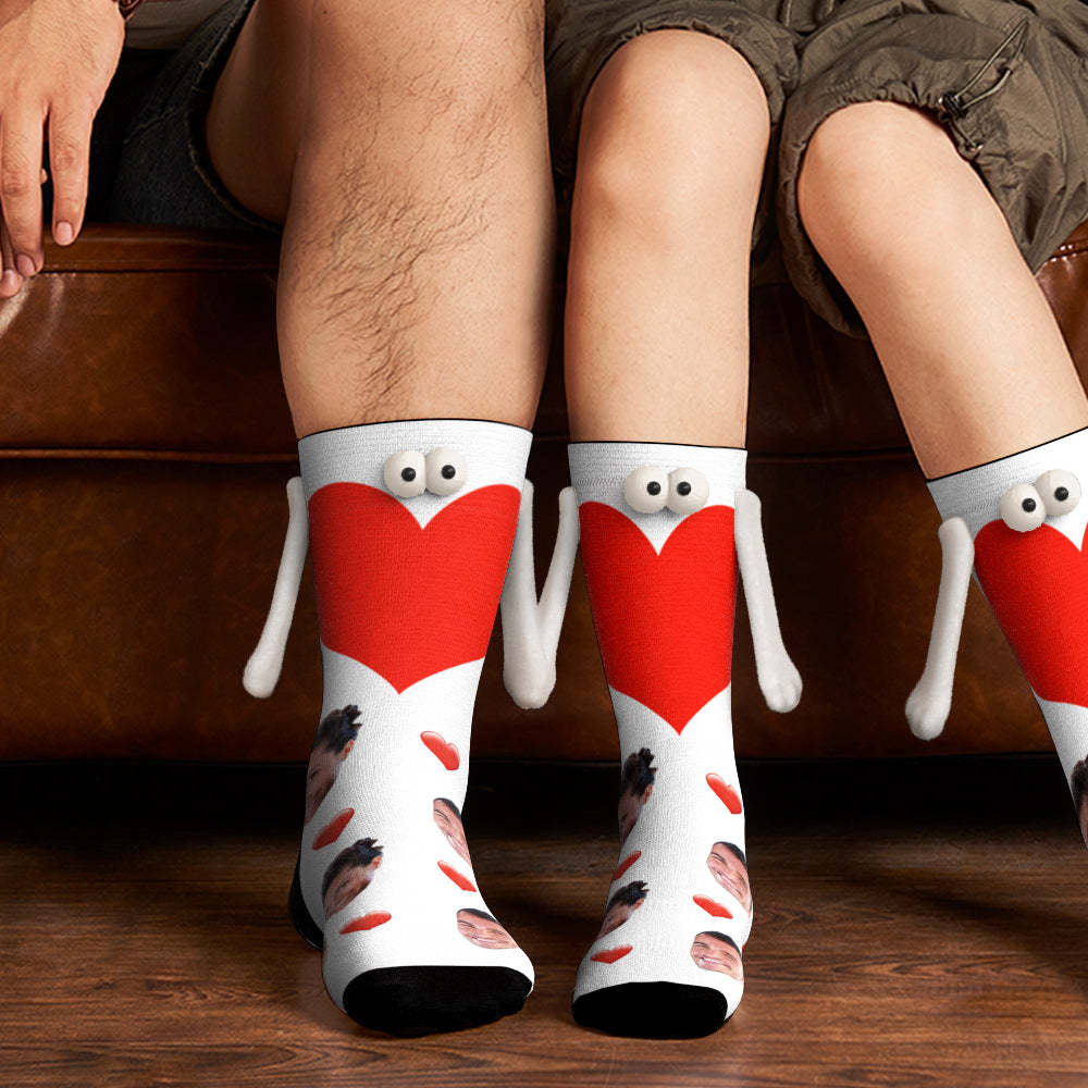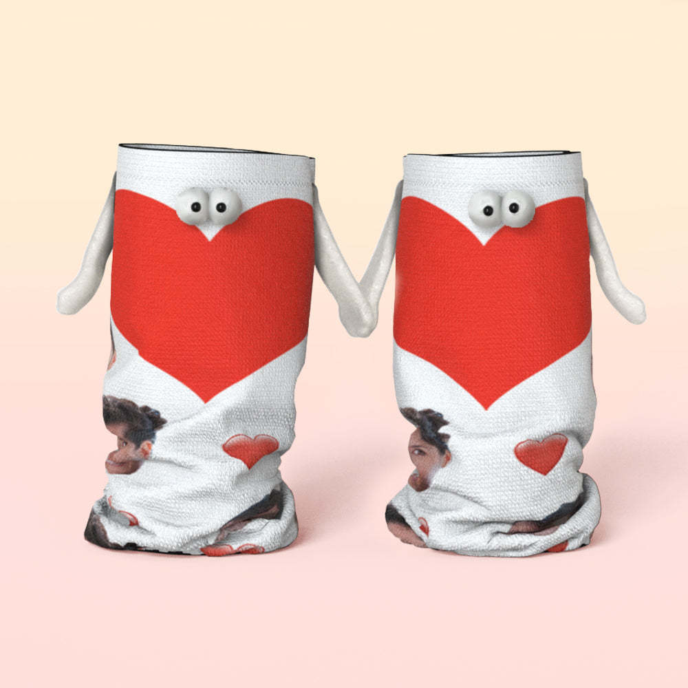 Custom Face Socks Magnetic Holding Hands Suction Funny Holding Hands Socks Lovely Socks for Couple Heart