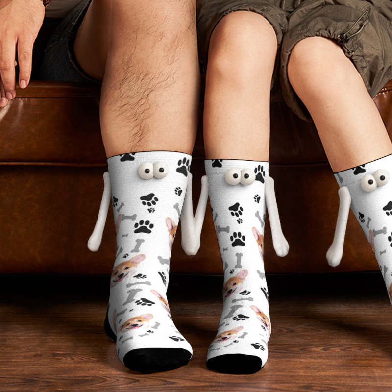 Custom Face Socks Magnetic Holding Hands Suction Funny Holding Hands Socks Lovely Socks for Couple - Pet