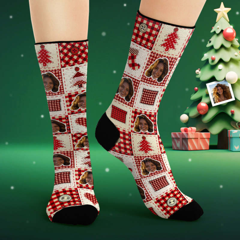 Custom Face Socks Personalized Photo Socks Christmas Plaid Pattern