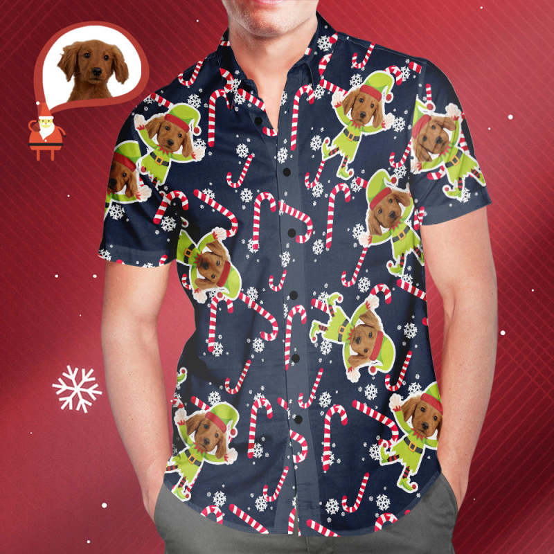 Custom Gog Face Christmas Elf Men's All Over Print Hawaiian Shirt Christmas Gift for Him