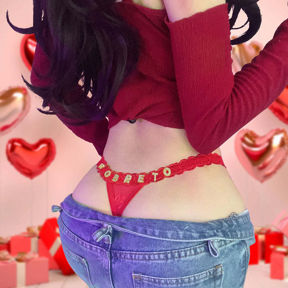 Custom Lace Thongs with Jewelry Crystal Letter Name Gift for Her