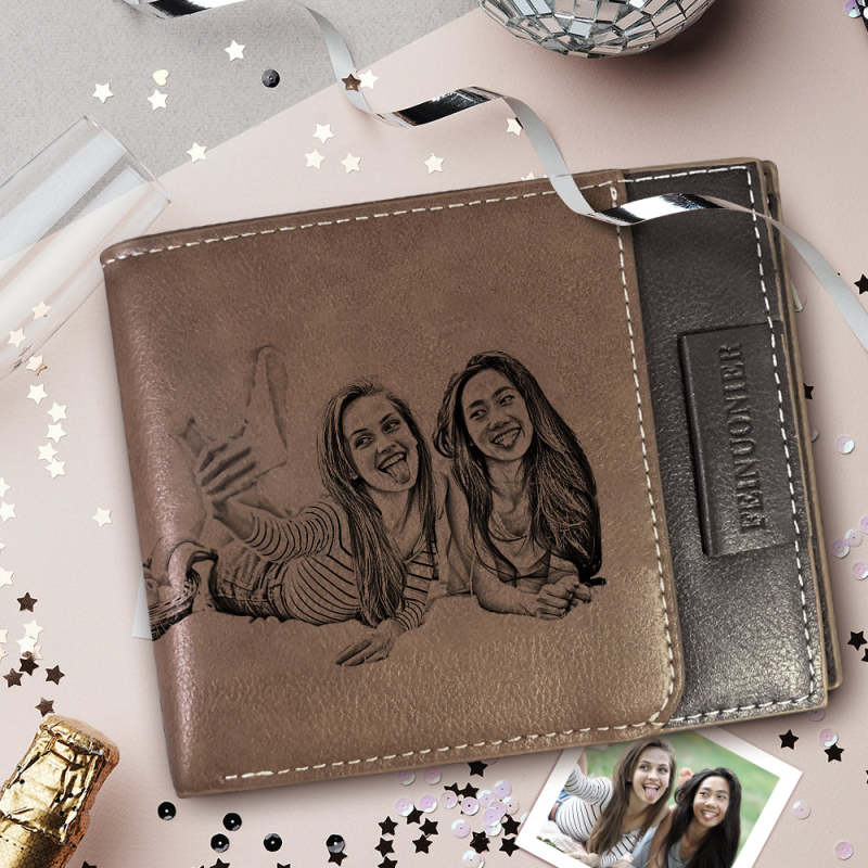 Personalised Wallet Engraved Photo Wallet Double Fold Wallet Large Capacity Gifts For Dad