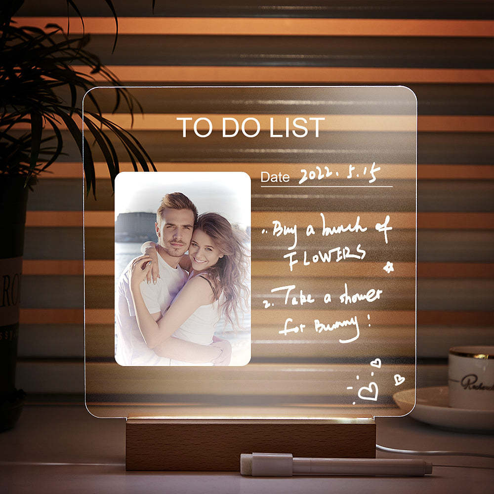 - Acrylic clear dry erase board package includes 1 x acrylic board of 20*20cm, 1 x wooden base with LED lights, 1 x white marker pen