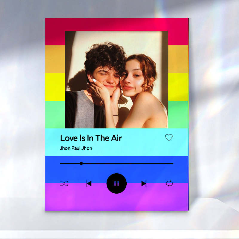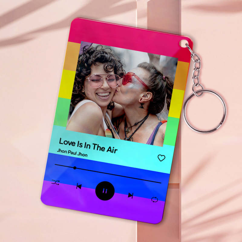 Custom Rainbow Background Photo Plaue Acrylic Text Keychain Personalized Gift