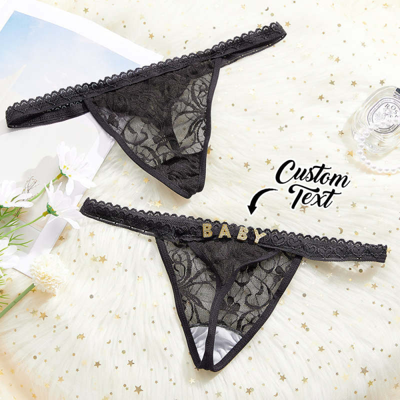Custom Rhinestone Letter Thong Personalized Name Lace Panties