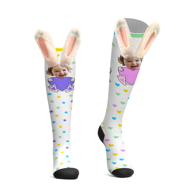 Custom Socks Knee High Face Socks 3D Plush Bunny Ears Socks - MadeMineAU Custom Socks Knee High Face Socks 3D Plush Bunny Ears Socks - MadeMineAU