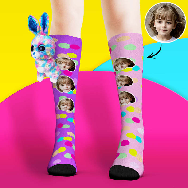 Custom Socks Knee High Face Socks Colorful Polka Dot Rabbit Doll Socks - MadeMineAU Custom Socks Knee High Face Socks Colorful Polka Dot Rabbit Doll Socks - MadeMineAU