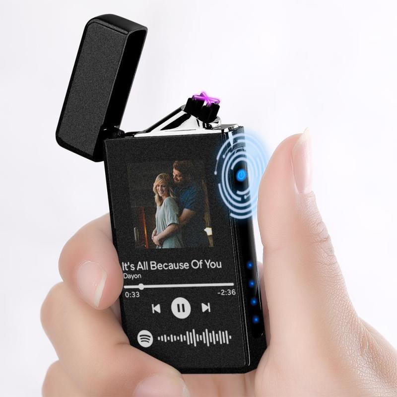 Custom Spotify Electric Cigarette Heart Photo Engraved Lighter USB Power