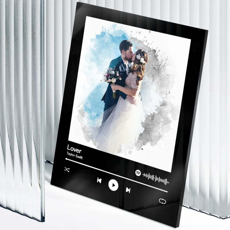 Custom Spotify Glass Code Oil Painting Style Couple Keychain/Plaque Anniversary Gifts