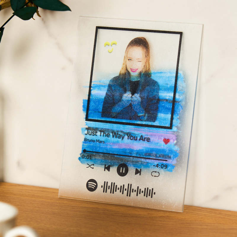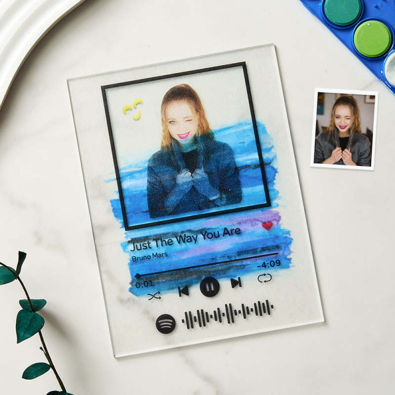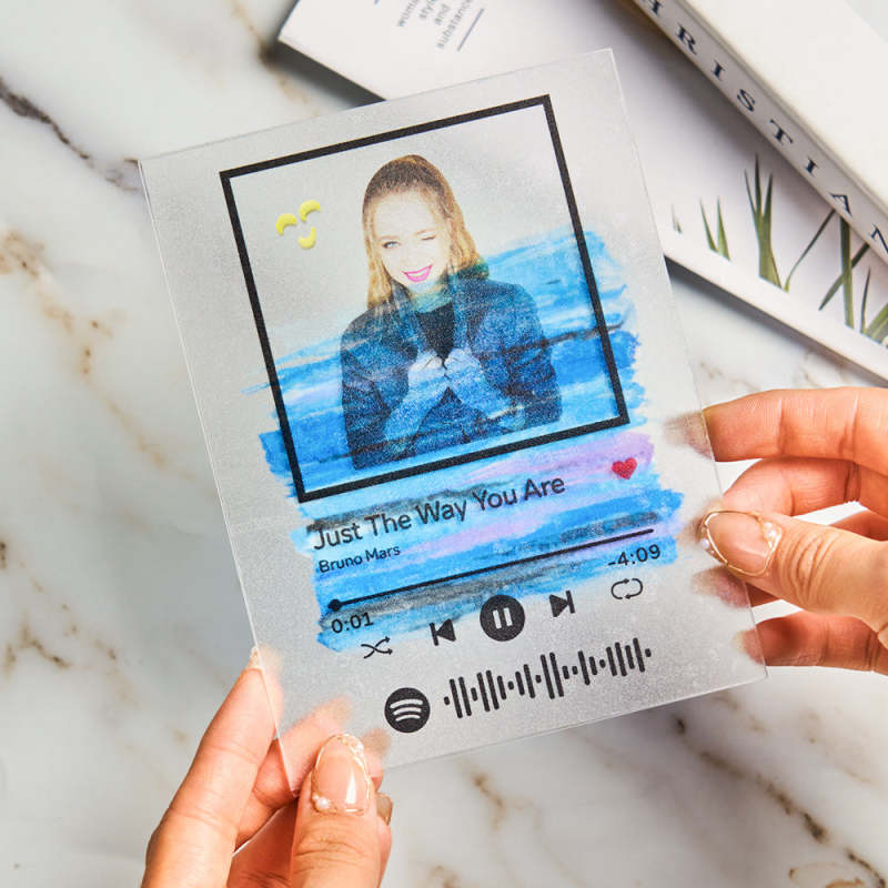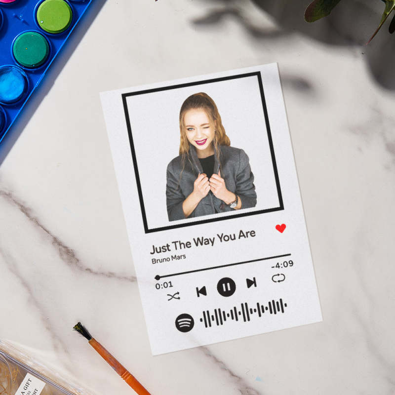 For this DIY acrylic plaque, you will receive a custom sticker, a set of solid paint, a brush, blank acrylic card. Make your own creative gift. You can choose any song title, artist name, and favorite photos you want, all can be imprinted on the plaque, and you can generate a unique Spotify code. Please note that the plaque itself does not emit music. You have to scan the code on the Spotify app, after scanning the code on Spotify, your song will start playing immediately. Suitable for Valentine's Day, Mother's Day, Father's Day, Christmas, and more. The paint is washable and can be used repeatedly.