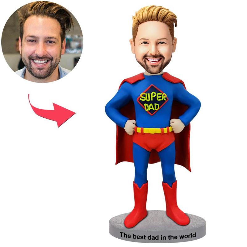 Custom Super Dad In A Cloak Superhero Bobbleheads With Engraved Text Gift For Anniversary