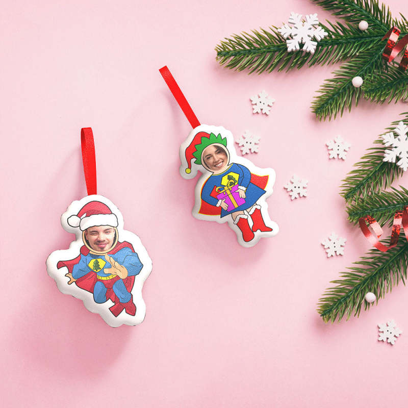 Fun Christmas tree hangings will bring you more than a few laughs. Our customised Human Face Superman and Superwoman Plush Hanging has strings so you can easily hang our Christmas Tree Hanging on a Christmas tree, living room or office to create a Christmas atmosphere.