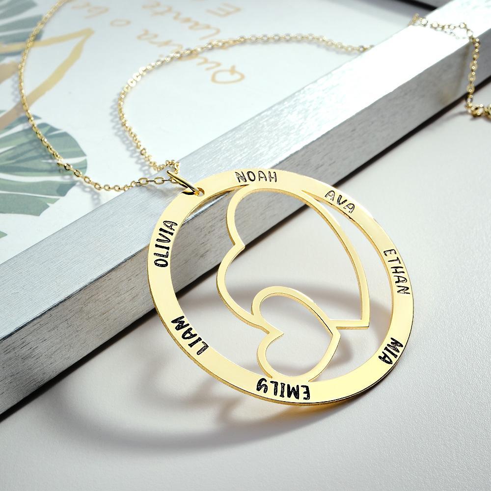 Engraved Name Necklace With Double Hearts Circle Elegant Pendant Jewelry Gifts For Her