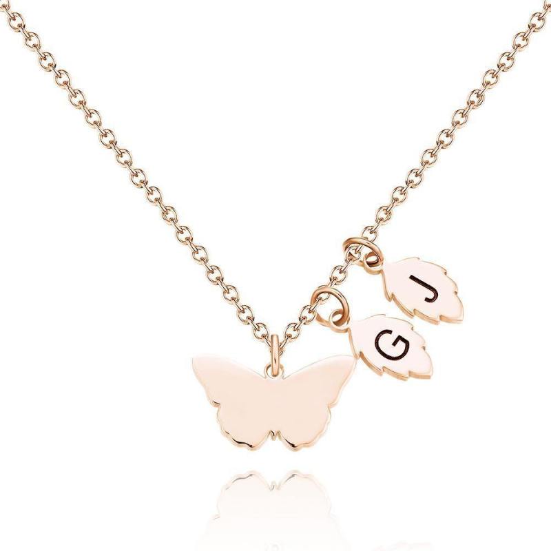Engraved Necklace with Butterfly and Leaves Necklace Gift for Her Rose Gold Plated Silver - MadeMineAU Engraved Necklace with Butterfly and Leaves Necklace Gift for Her Rose Gold Plated Silver - MadeMineAU Engraved Necklace with Butterfly and Leaves Necklace Gift for Her Rose Gold Plated Silver - MadeMineAU