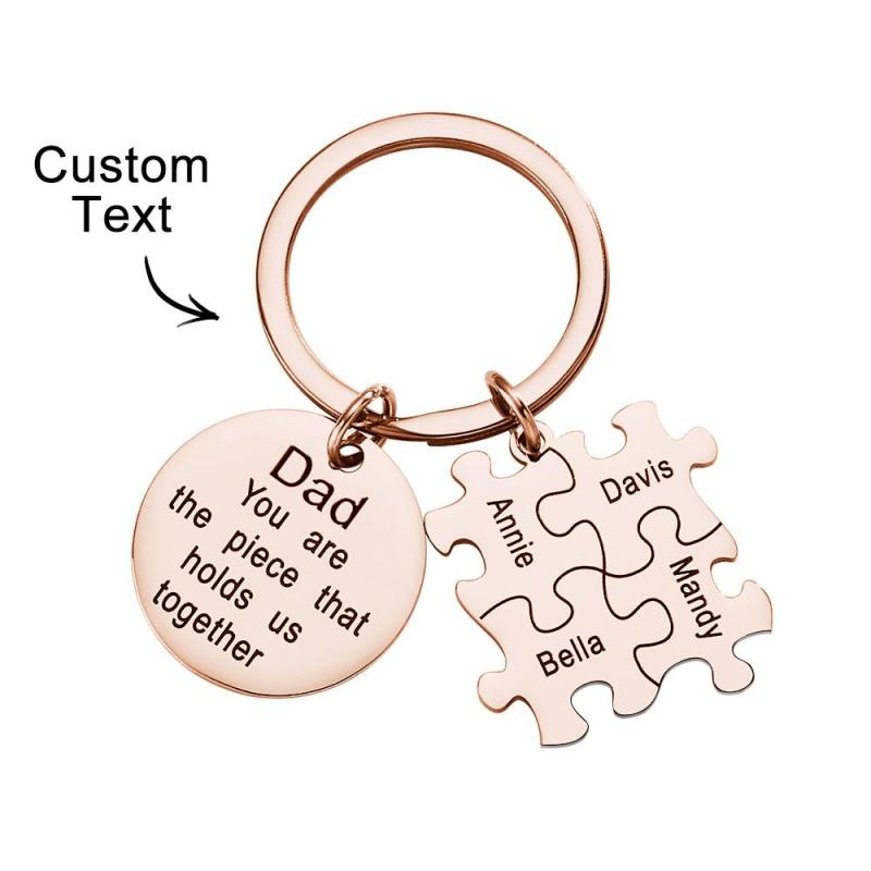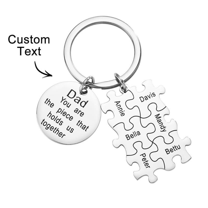 Engraved Puzzle Circle Keychain Personalized Key Ring Father's Day Gift