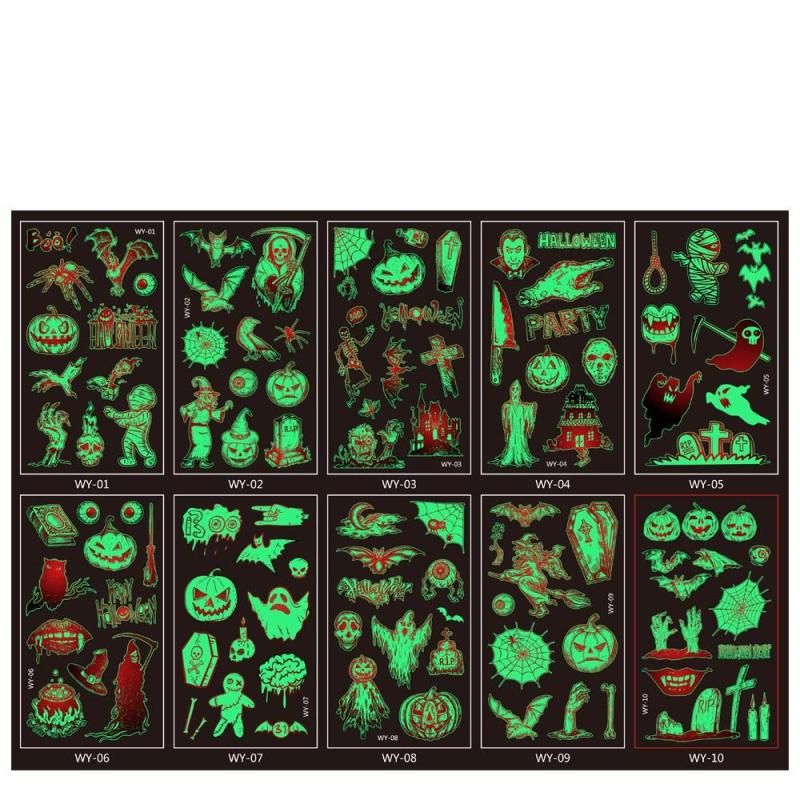 Halloween Stickers 10 Pcs Glow in the Dark Temporary Tattoo Stickers