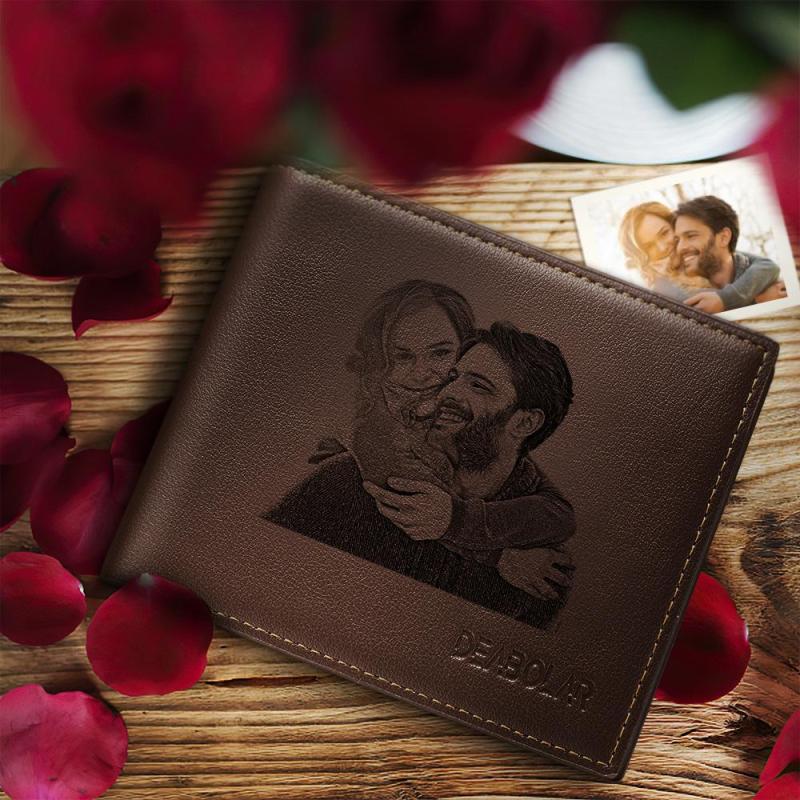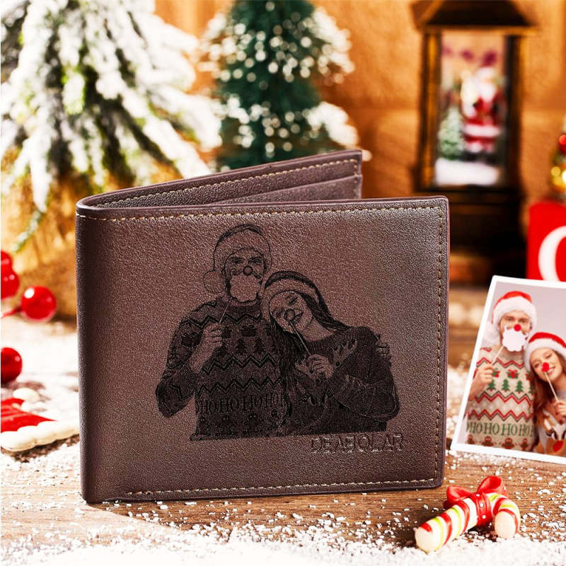 Men's Brown Custom Photo Wallet Best Gifts For Christmas Gifts For Him