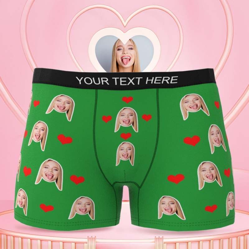 Men's Face Boxer Custom Photo Boxer Shorts with Text - Blue