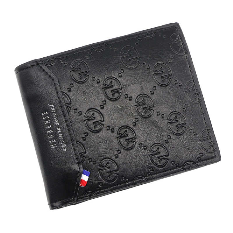 Men's Short Leather Bifold Wallet Business Casual Embossed Wallet Father's Day Gifts