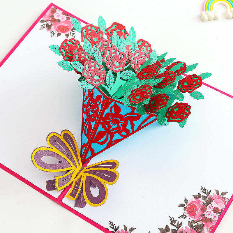 Mother's Day Creative Greeting Card Folding Bouquet Three-dimensional Greeting Card 3d Handmade Blessing Card