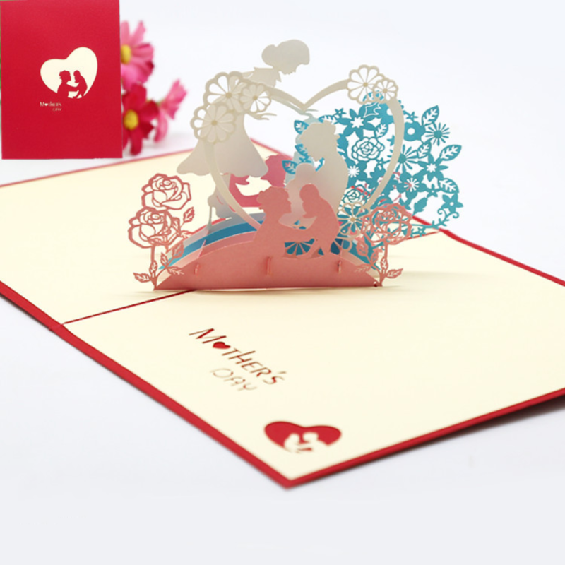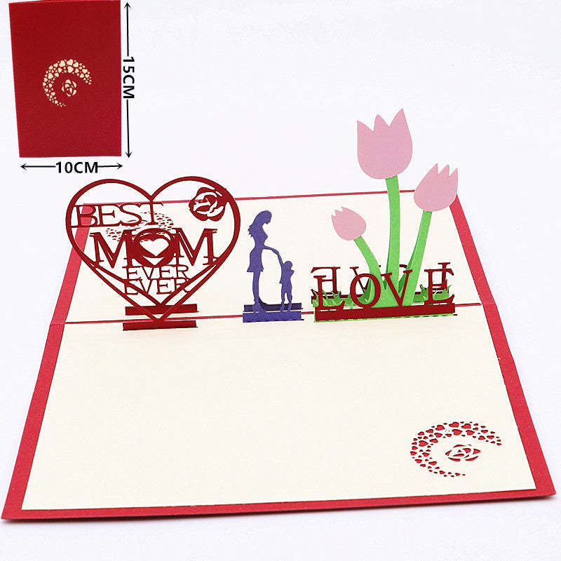Mother's Day Three-dimensional Greeting Card Handmade Birthday Greeting Card Red Hollow Paper Carving Card