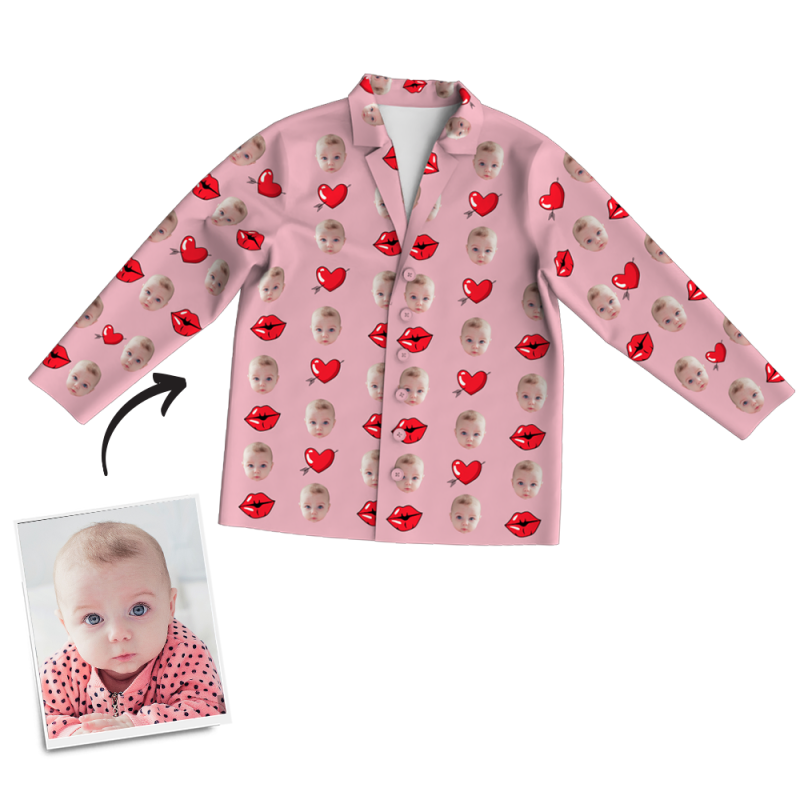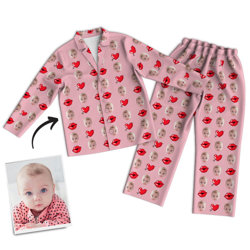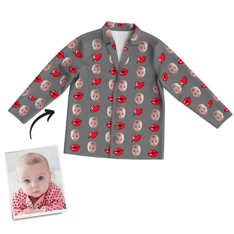 Multi-Color Custom Photo Long Sleeve Pajamas Sleepwear Nightwear Love Baby
