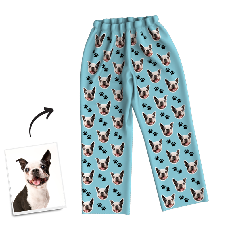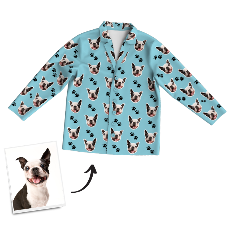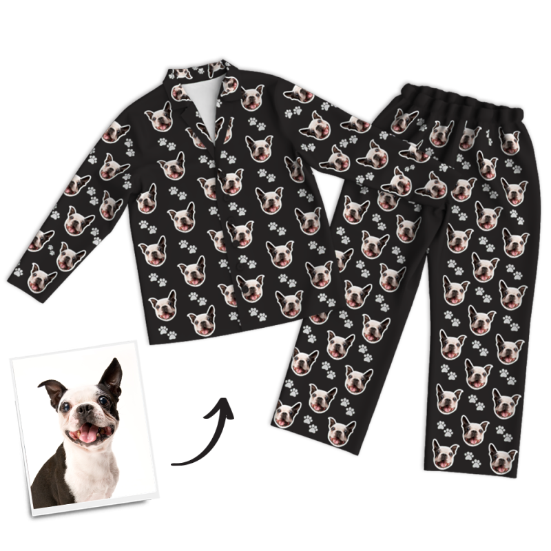 Multi-Color Custom Dog Photo Long Sleeve Pajamas, Sleepwear, Nightwear
