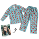 Multi-Color Custom Photo Long Sleeve Pajamas, Sleepwear, Nightwear - Heart