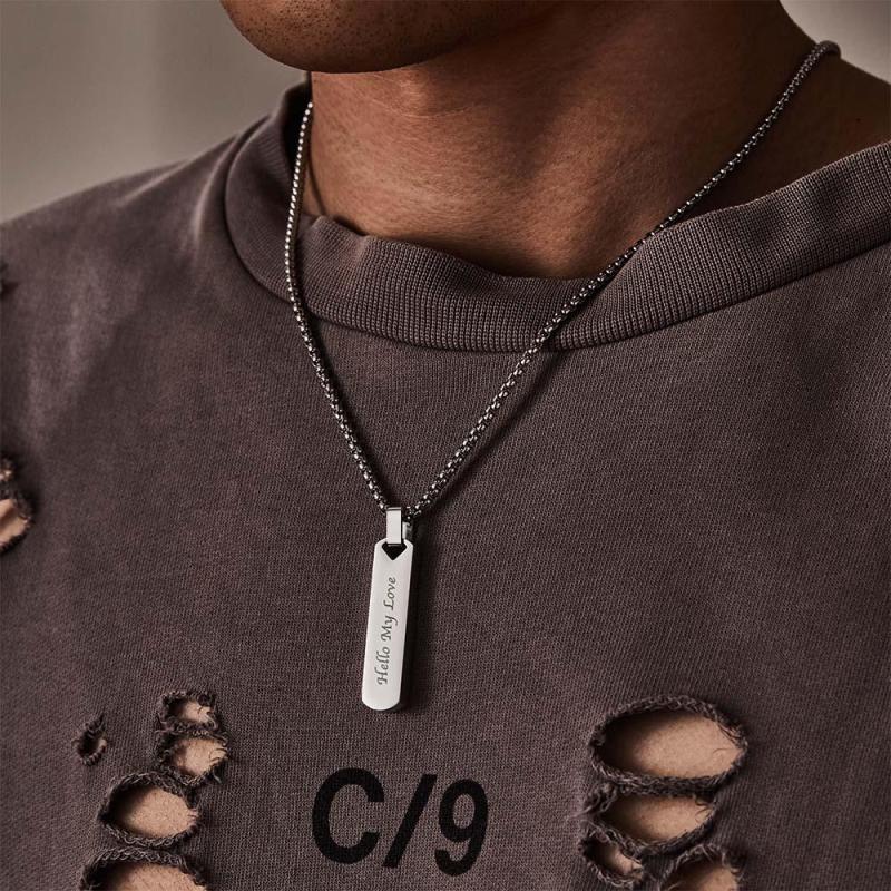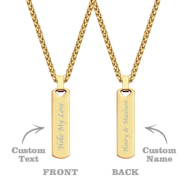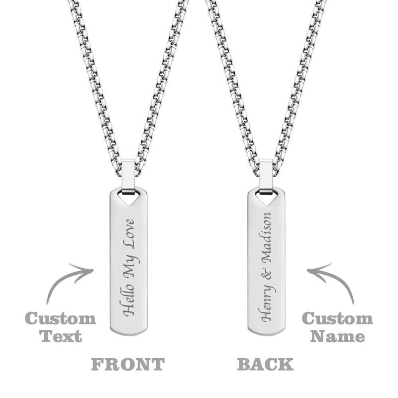 Personalized Bar Necklace for Men Double-sided Stunning and Dainty gift for Christmas Valentines Day Fathers Day Birthday Anniversary Wedding