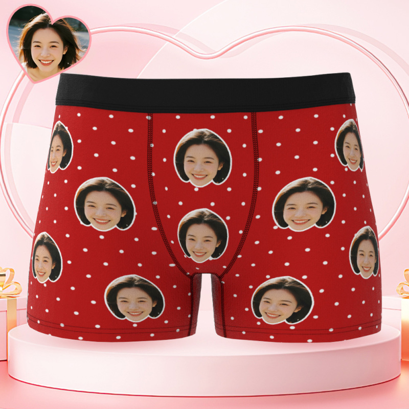 Personalized Face Underwear Custom Photo Underwear Polka Boxers for Boyfriend