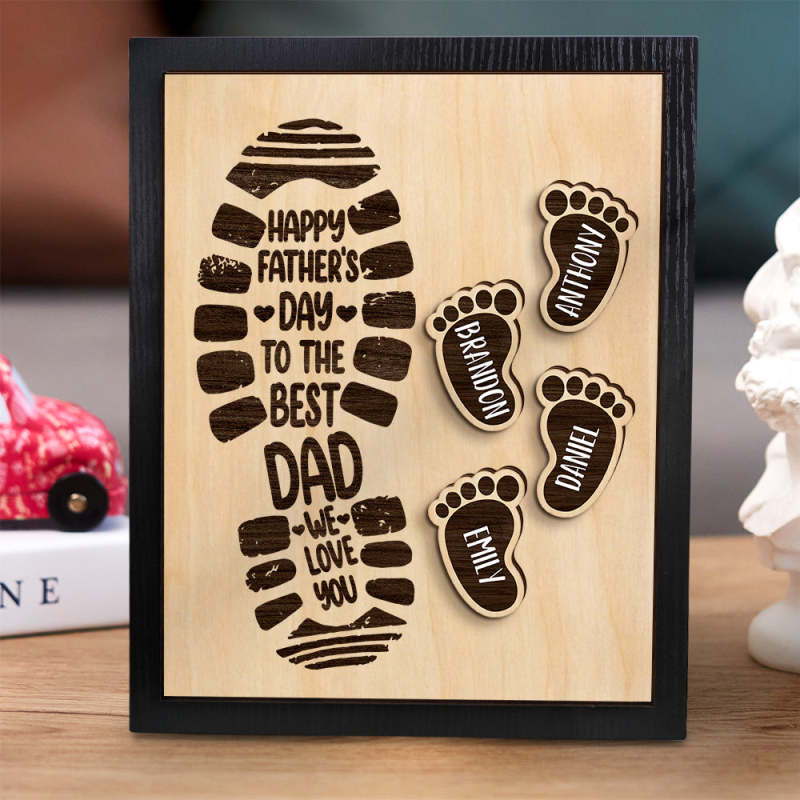 Personalized Footprints Wooden Frame Custom Family Member Names Father's Day Gift