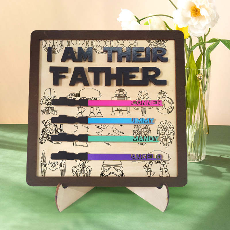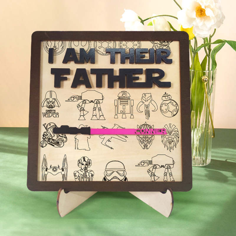 Personalized I Am Their Father Sign Wooden Light Saber Plaque Father's Day Gifts