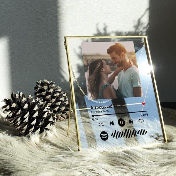 - Custom Unique Gifts - Custom Spotify Code Music Photo Acrylic Plaque Golden Frame can be engraved with your favorite photo, text and a favorite song, making it a precious memory. You can choose the white or black text on the plate.