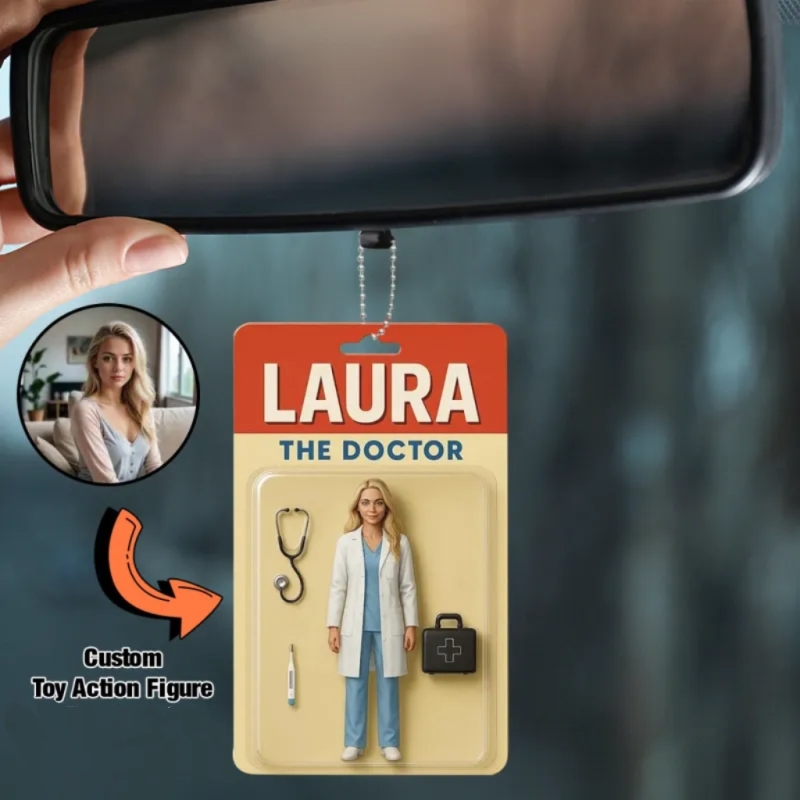 Turn Your Photo into an Action Figure Custom 2D Hanging Ornaments Toy Box Portrait Custom Text Name Funny Gift for Him Her