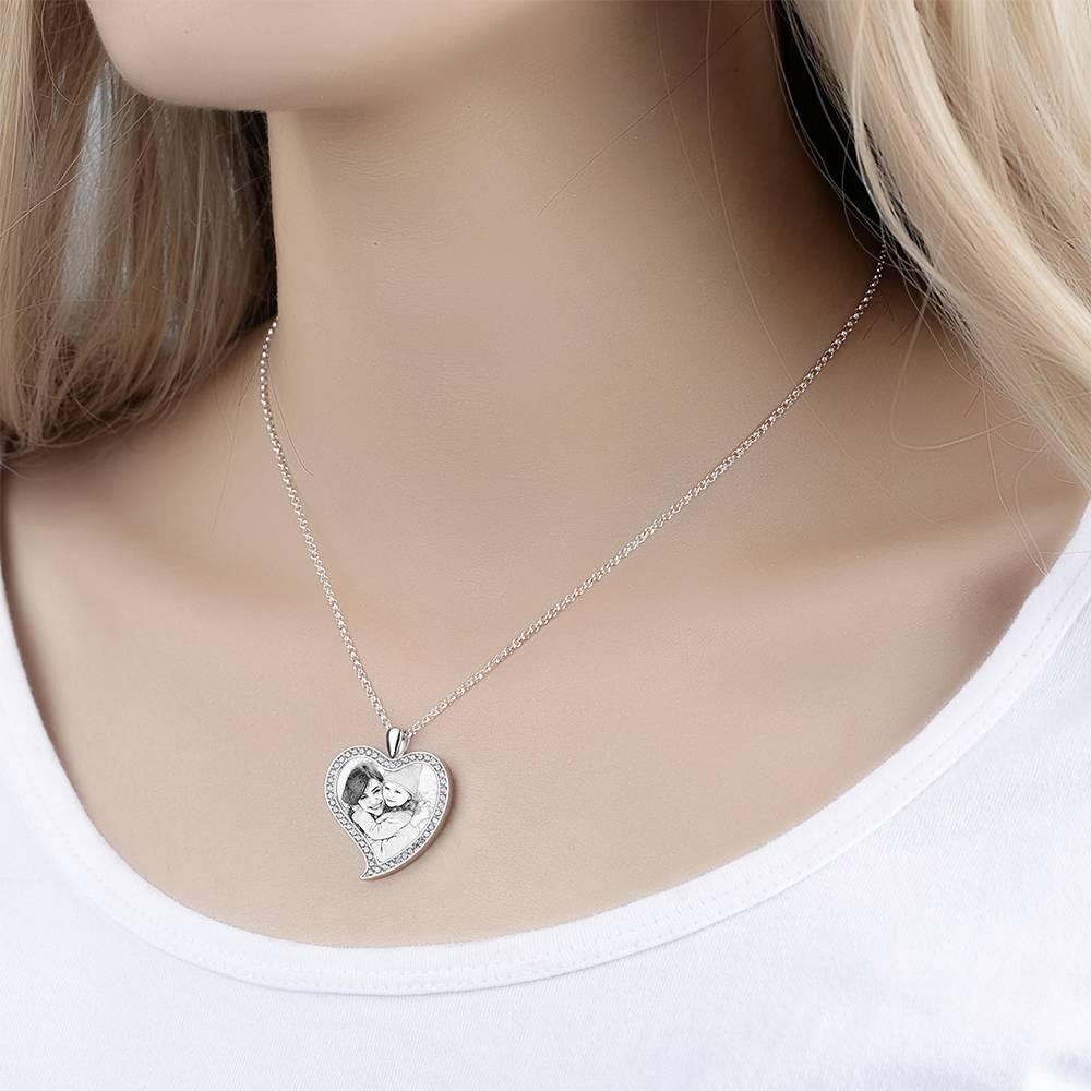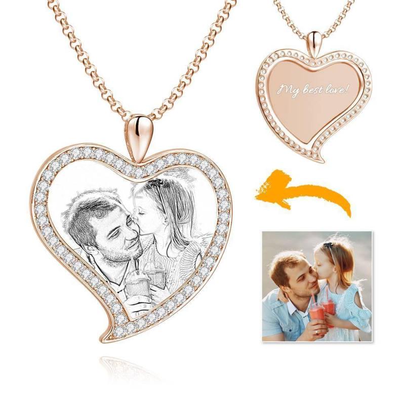 Personalized Stainless Steel Tag Photo Pendant is the perfect way to keep your greatest memories close to the soul. This custom photo necklace is made of sturdy, stainless steel that will never tarnish so you can hold it close for many years to come. The perfect thoughtful, fun, and unique gift for any occasion! Has a ton of customized jewelry options that are reasonably priced and make for great gifts for all sorts of occasions like birthdays, holidays, anniversaries, Father's Day. Women's Personalized Photo Engraved Necklace, Rhinestone Crystal Love Heart Shape Photo Necklace Platinum Plated Silver - Sketch.