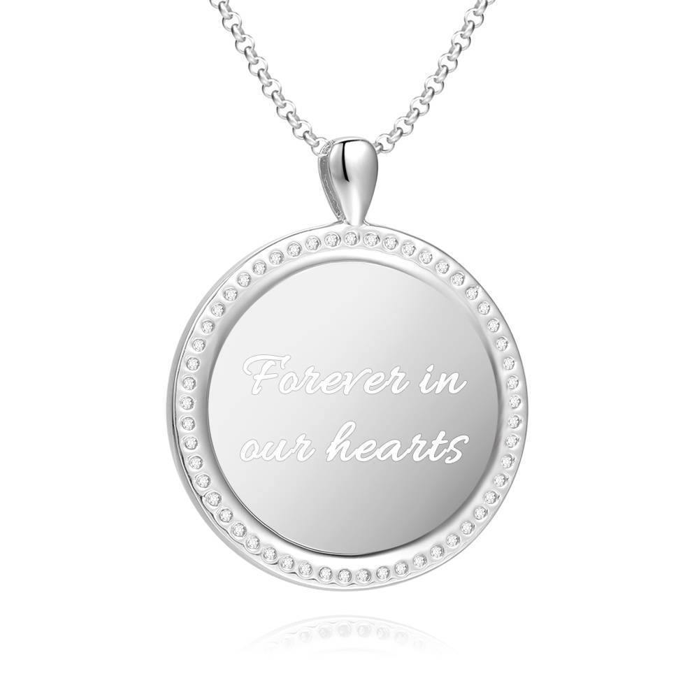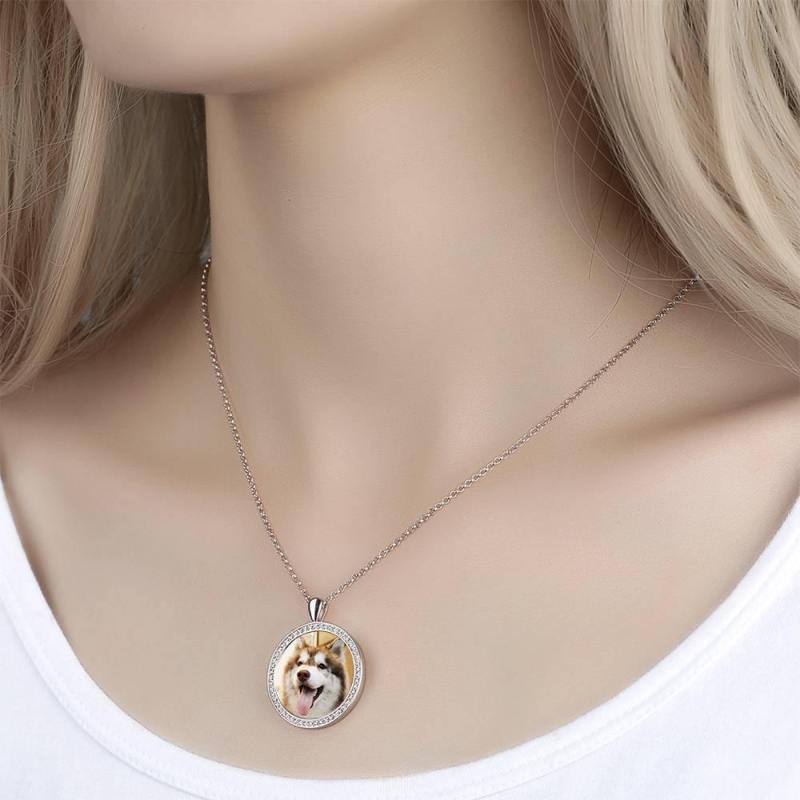 Personalized Stainless Steel Tag Photo Pendant is the perfect way to keep your greatest memories close to the soul. This custom photo necklace is made of sturdy, stainless steel that will never tarnish so you can hold it close for many years to come. The perfect thoughtful, fun, and unique gift for any occasion! Has a ton of customized jewelry options that are reasonably priced and make for great gifts for all sorts of occasions like birthdays, holidays, anniversaries, Father's Day. Women's Personalized Photo Engraved Necklace, Rhinestone Crystal Round Shape Photo Necklace Platinum Plated Silver - Colorful.